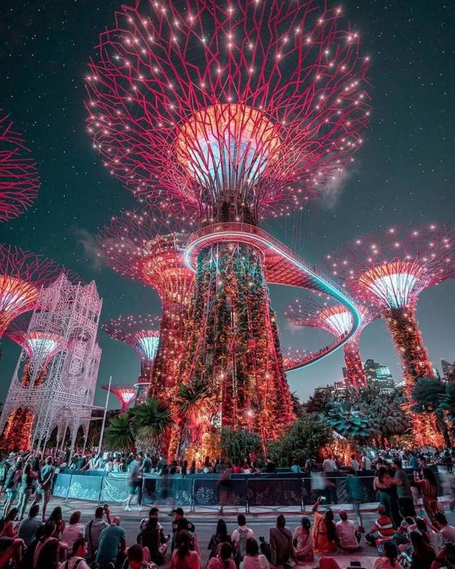 位于滨海湾亲水黄金区域整个园区最让人印象深刻的要素要数几十米高的“擎天大树”了