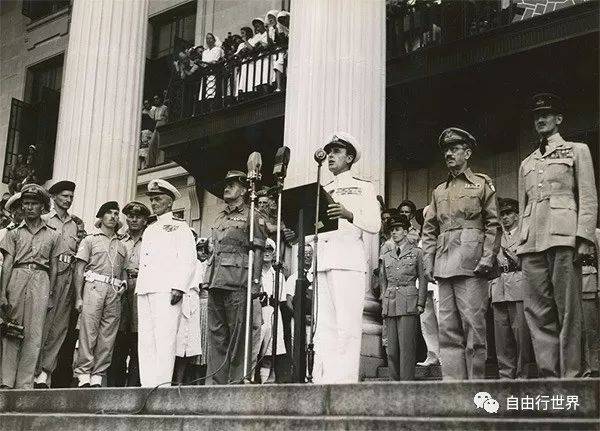 1945年9月12日,蒙巴顿将军在市政厅大楼接受日军投降;
