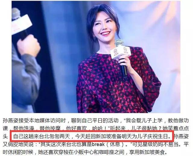 我们都知道,孙燕姿从台湾出道,事业的重心也基本都在台湾,而她为了孩子,台北——新加坡两头跑。