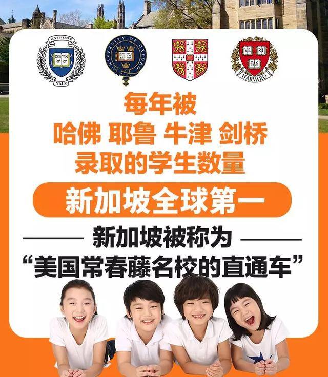 像所有学子都向往的哈佛、耶鲁、牛津、剑桥等享誉全球的大学,在新加坡无论是录取率还是录取的人数都是全球第一,新加坡的中学也被称为美国“常春藤名校的直通车”。