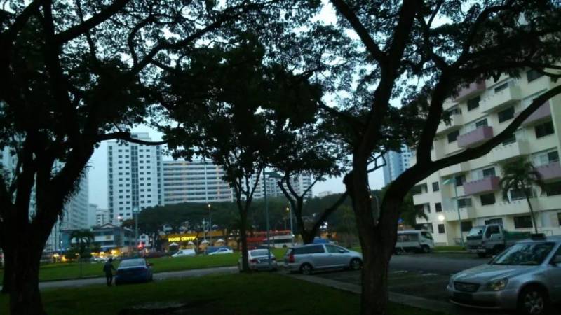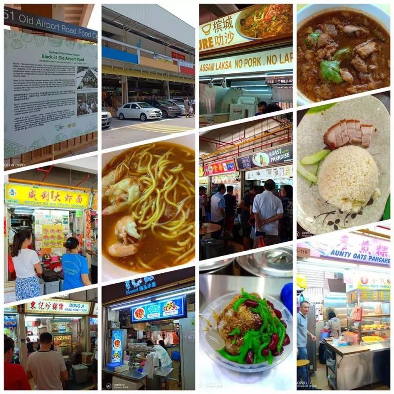 (旧机场路公共活动区域 图来源于:yvonne yee脸书)旧机场路上诺大的草坪旁,有一个长长的熟食中心,外墙五颜六色,里面热气腾腾。一层卖食物,二层卖用品。听说这是全新加坡最大的美食中心之一。很多小吃都承载了几代人的真传,具有各类美味佳肴。类似这样的“社区食堂”(新加坡总理李显龙语),新加坡比比皆是,遍地开花,什么时候都饿不着!对受不了天热气候、又不方便做饭的人们,这还真是个好去处。在呼呼不停的风扇转动下,在“新月”牌子的遮阳伞下,在四面吹来的热雨尽洒下,社区居民有滋有味地享用着,品尝著,食饮著,生活着。