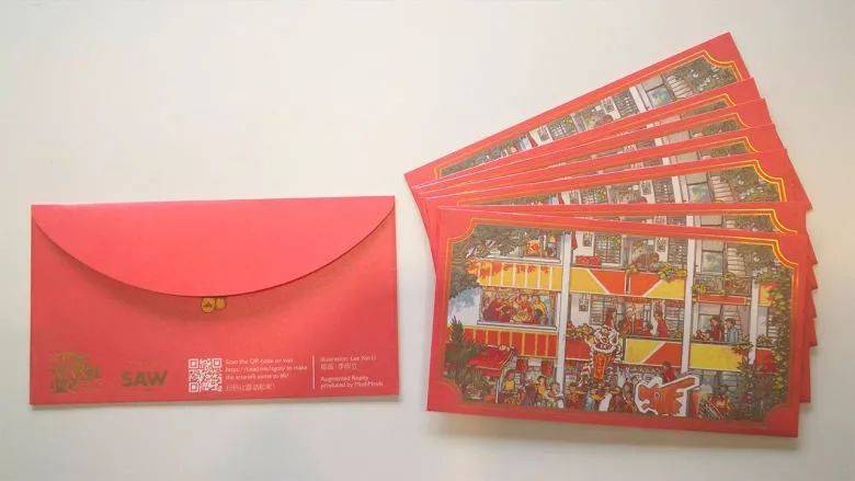 今年新加坡华族文化中心和李欣立画家合作,设计出了一款具有新加坡色彩的红包封,只要扫一下红包上的QR码,一副新加坡的新年景象立马在你眼前展现。