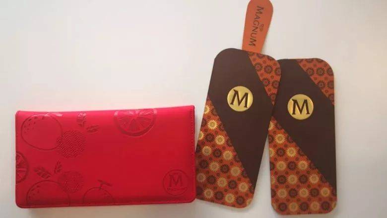 今年冰激凌品牌Magnum推出了一款特别有设计感的红包封,他们一改传统的大红色,采用经典的巧克力色搭配寓意吉祥如意的桔色,色彩鲜明有好看,当小朋友收到这样的红宝时,肯定想第一时间拿去买冰激凌。