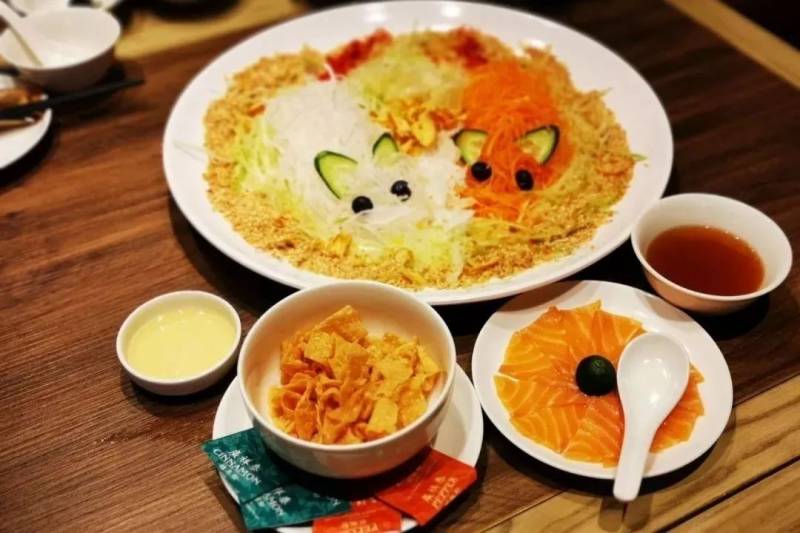 这里的鱼生,是玉厨的低配版,虽然没有香槟啫喱,但却有一对活灵活现的小老鼠,看着就有过年的味道。(点击这里看年夜饭套餐价格)