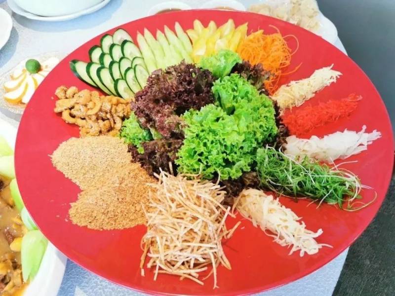 走健康路线的鱼生,看的全是刀工。这一份满满的蔬菜,成了过年解腻的好帮手。