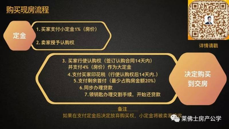 签订合同(Option to Purchase)以后,买家需要当场支付1%定金给卖家。
