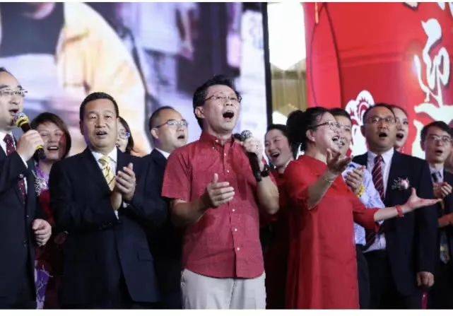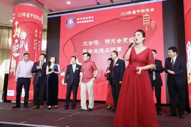 联欢会在一曲《明天会更好》的乐曲声中,由李奕贤主席、邱元兴参赞兼总领事、赵炳利会长、明旻执行会长领唱,与诸位嘉宾和全体理事共歌,将整台联谊会推向了新的高潮。