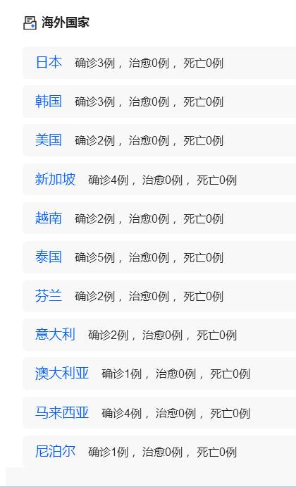 (中国确诊人数曲线呈激增状态,图自腾讯)而全球感染确诊人数也增加至29例。
