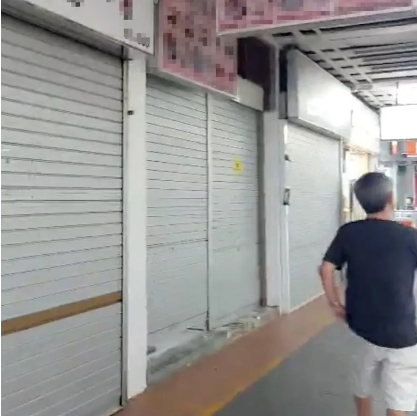 大巴窑6巷一家空置的店铺外,早上出现一名阿嫂,在街上公然非法兜售口罩。