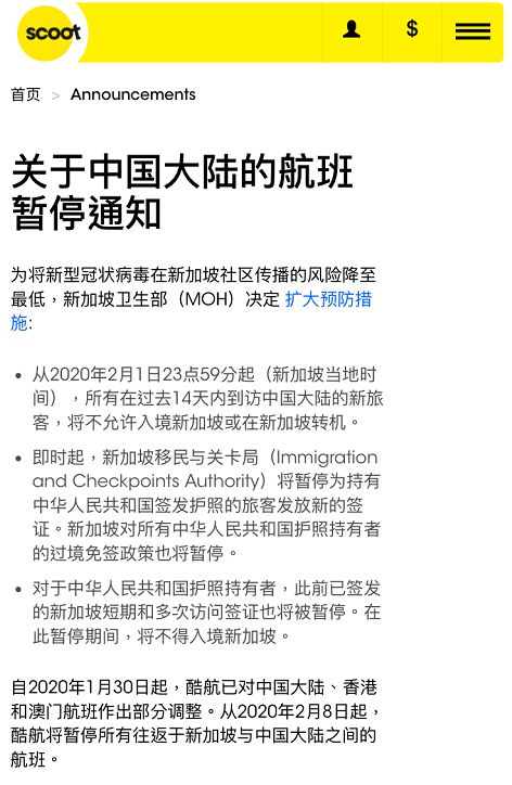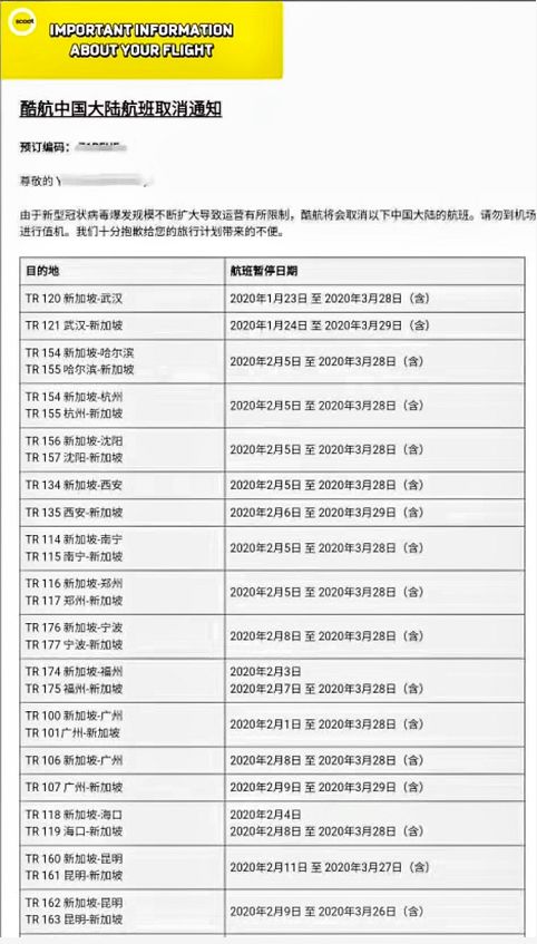 刚刚,南航宣布:2月8日-3月28日 新加坡广州航班将全部取消 2月3日起每天2班 CZ354和CZ3040 保留至2月7日