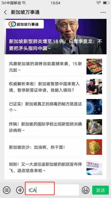 第2步:进入新加坡万事通公众号后台,在新加坡万事通后台的对话框回复【ICA】,即可获取详情~