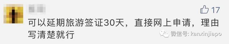 如今官方发话,已经在新加坡的旅客如果申请延长社交签证,他们仍会按照原来的准则评估申请。延长社交申请获得批准后,原本只能在新加坡待30天的旅客可以多待30天。而那些已经延长签证者也可以二度申请延期,移民与关卡局会根据申请者情况决定是否批准申请。