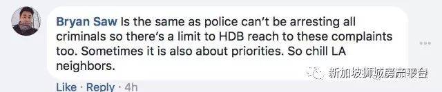 (就像警察不能逮捕所有罪犯,HDB也没法回复所有的投诉。有时候这也关系到处理问题的先后顺序。所以,邻居们请冷静)