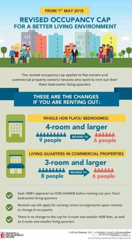 今天早上,新加坡建屋局(HDB)向广大群众发布了一个爆炸性的租房条例,从2018年5月1日起,4房以上的组屋最多只能租给6个人了(原本可以租给9个人),简直是晴天霹雳啊~~好在3房以下的组屋租户人数限制不变。