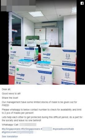 此外,新加坡的部分私人公司也有为公众提供免费口罩。