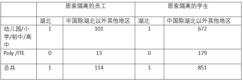答:我们考虑了这一点,并且征询了医学专家的意见,得出的结论是没有必要这样做,与香港情况不同,香港离大陆更近,而从中国大陆返回香港的学生和教职员工可能是我们的许多倍,我们也评估了最近从中国返回的学生的教职工人数是可控制的,而14天的隔离也将更有针对性。