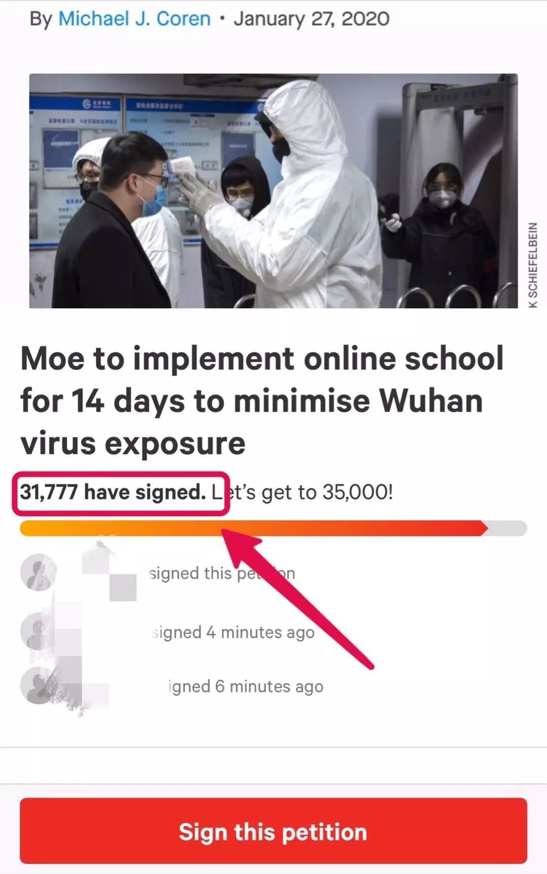 而看到人传人的病例出现,家长们再次请愿,截至今天上午10点,请愿人数已达3万+。