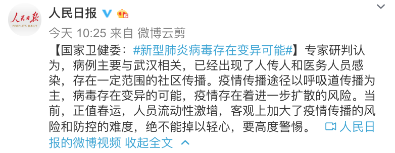 就中国卫健委发布的官方信息,新型肺炎病毒存在变异的可能性,而老年人、孕妇、婴幼儿等免疫功能较差的群体,一旦感染,发病可能更快更严重,更需要重视预防。