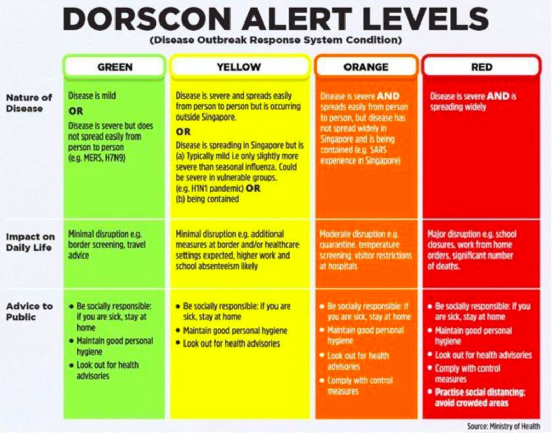 (2月7日),新加坡政府宣布新加坡将“疾病爆发应对系统”(DORSCON)警戒级别从黄色提升至橙色。
