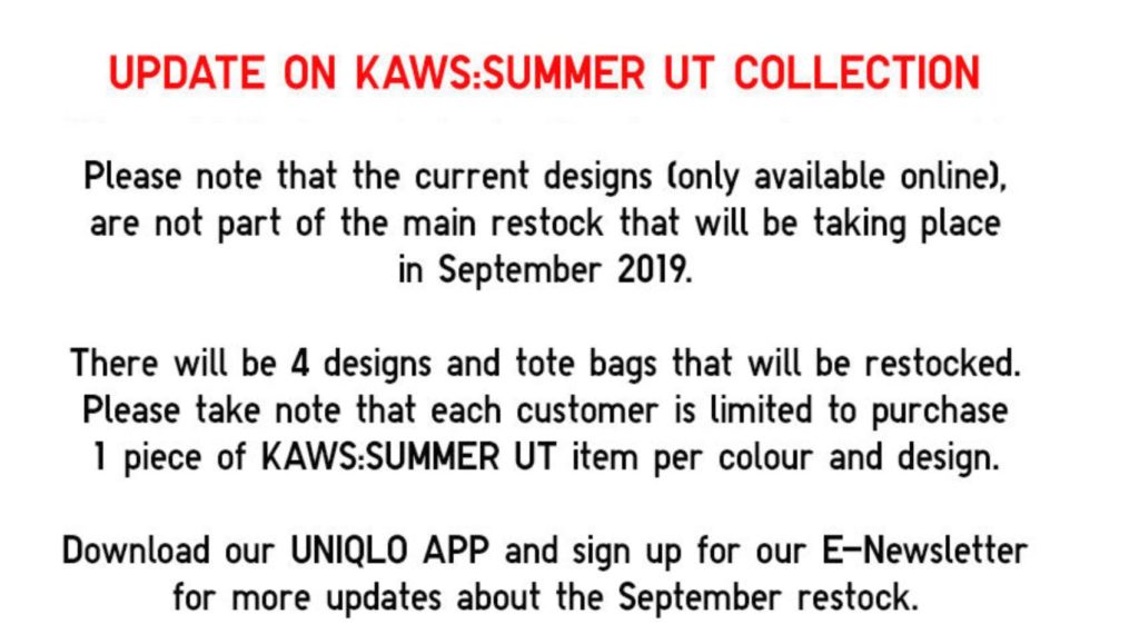KAWS×UNIQLO最后一季联名款部分款式将补货!新加坡9月份重新上架,每人每款限购一件!
