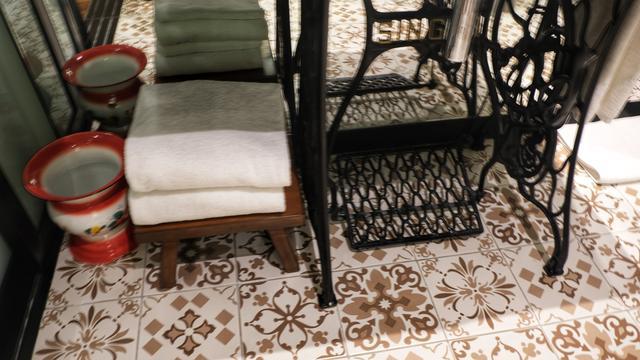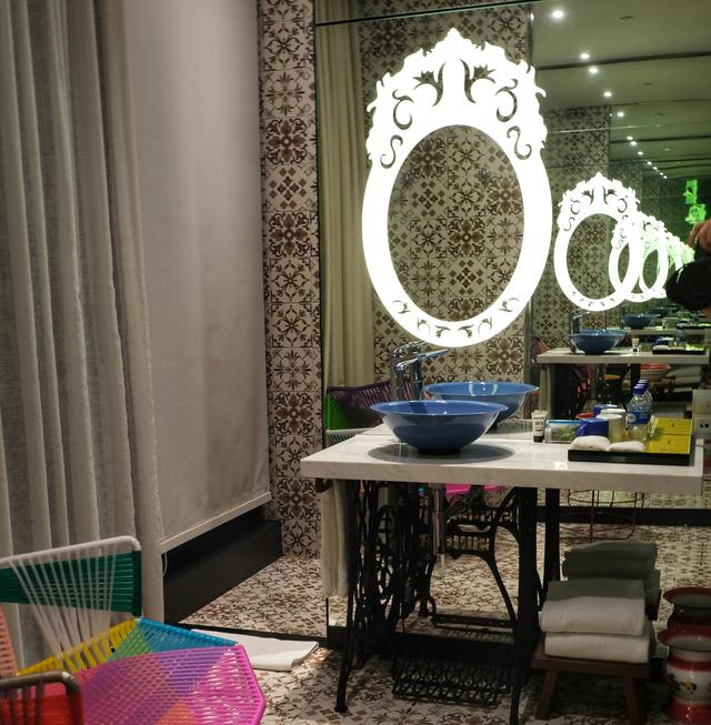 洗手间里面的花界砖也很有年代感,虽然让人有点眼花缭乱,但也绝对是设计师的用心良苦。