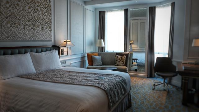 六善达士敦全部的房间都是大床房,空间不算很大,与众不同的墙纸,手写的客信,特色的欢迎饮料都凸显酒店的高雅魅力。