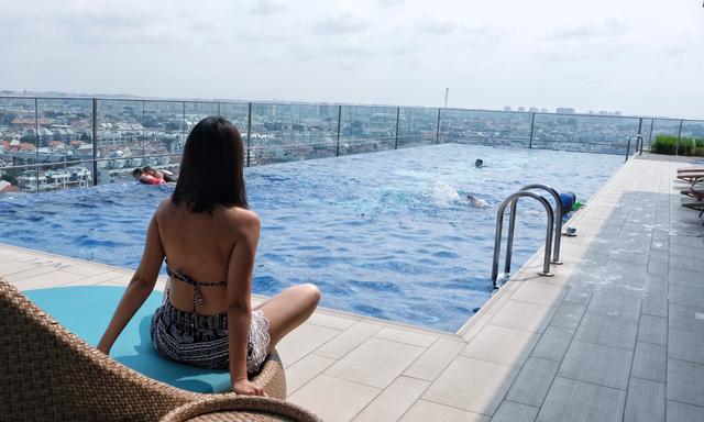 偏执于地道特色的网红酒店,加东英迪格酒店位于富人区加东的这家英迪格是一家小众的特色酒店,最多网红来打卡的地方应属其楼顶的无边泳池。一抹湛蓝,一片天蓝,是这个网红泳池的代名词,我们放下行装迫不及待地就去游泳。