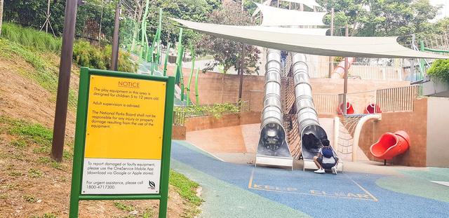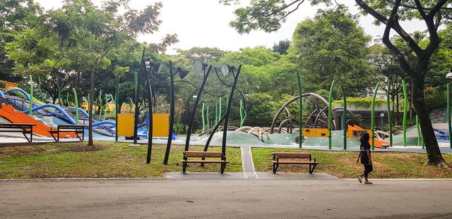 沿走廊到底,过马路,还看到一个不算大的校区,学校旁边就是海军部公园(Admiralty Park)。至少在我进公园的时候,所到之处和印象中的新加坡公园没太多不同:娱乐设施很多,安全,小孩不少。
