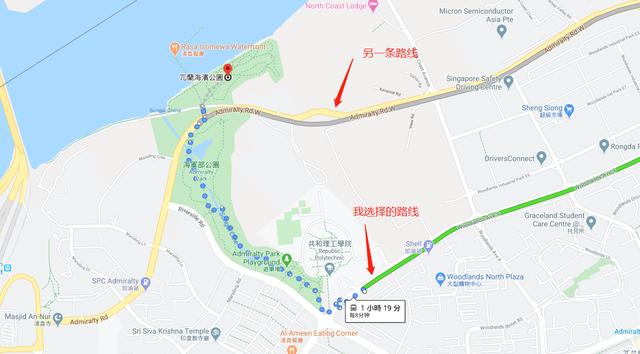 离开的时候,看地图,距离边境其实也没多远,干脆在汤申路上段搭上车,直接前往边境的兀兰海滨公园(Woodlands Waterfront Park)。