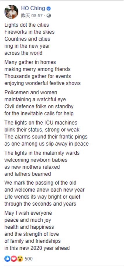 何晶本人平时似乎有写诗的爱好,每到新年她便会在社交媒体上发表一篇洋洋洒洒的“大作”。本文就以何晶在2020新年伊始的一首诗作作为结尾,也借她的祝福,希望这场打破平静的新冠战“疫”早日结束。