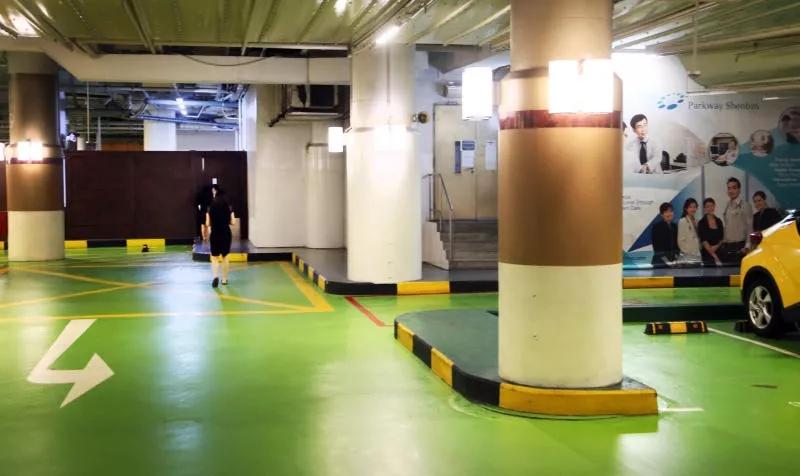 名胜世界赌场员工入口处位于地下二层(左) ,右边楼梯则通往Parkway Shenton的诊所。