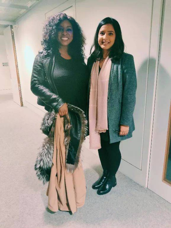 Shikha(右)在巴黎高等商学院主持了一场与Facebook、Instagram和WhatsApp的奢侈品全球主管Morin Oluwole(左)对话的活动