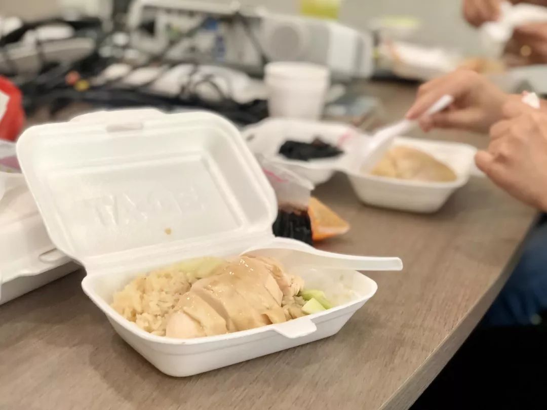 没有时间外出午餐,同事打包了著名的海南鸡饭。