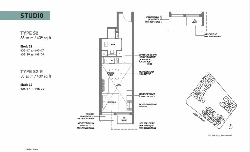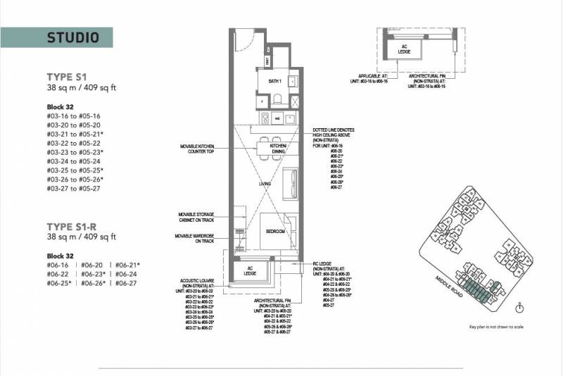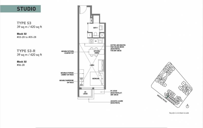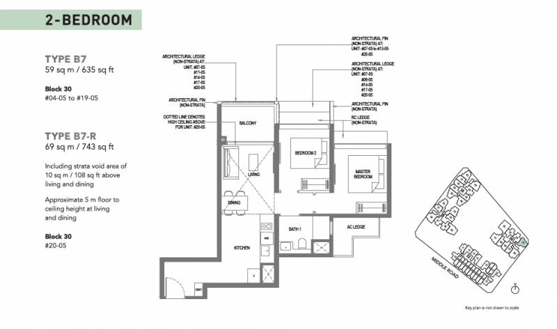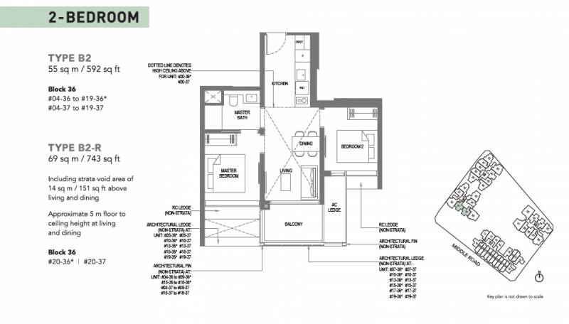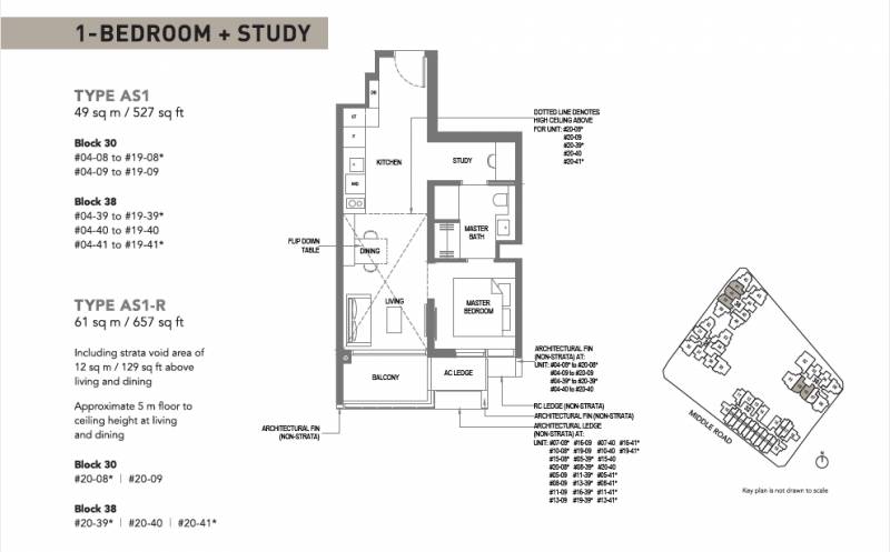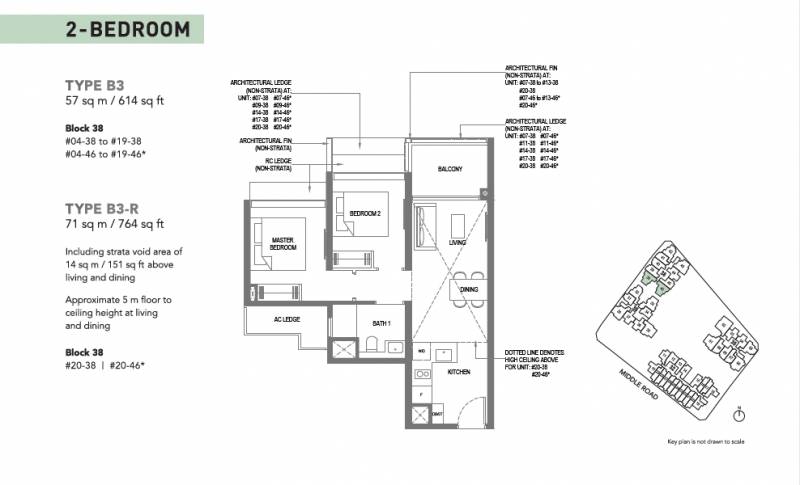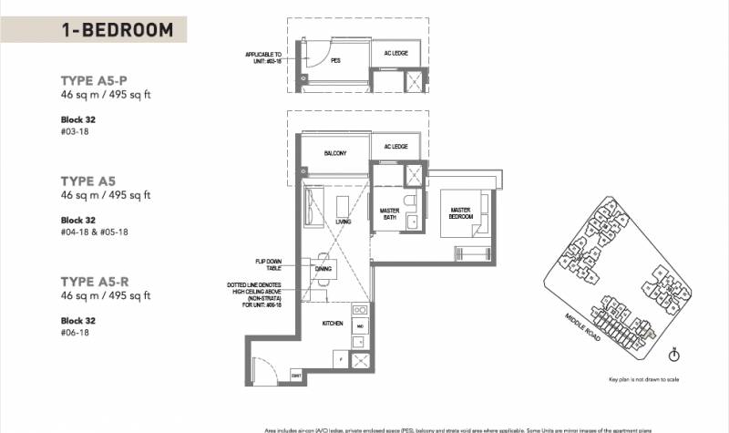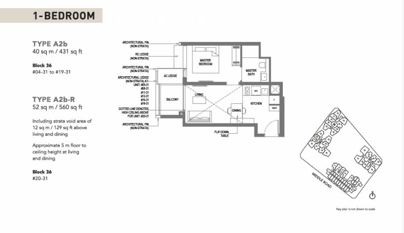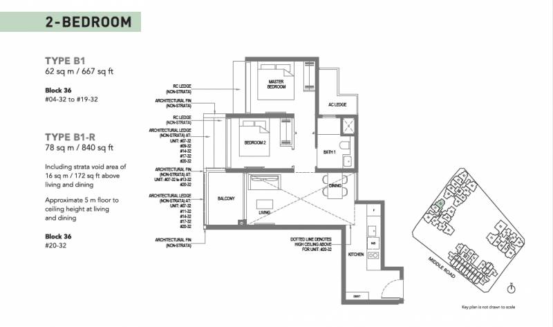 The M 建筑面积约7,462.7㎡,容积率为4.2,包括1栋20层的高楼和一栋6层楼,共有522个住宅单位,户型包括studio、一居室、一居室+书房、两居室、两居室+书房、三居室,单位面积介于38㎡至84㎡。
