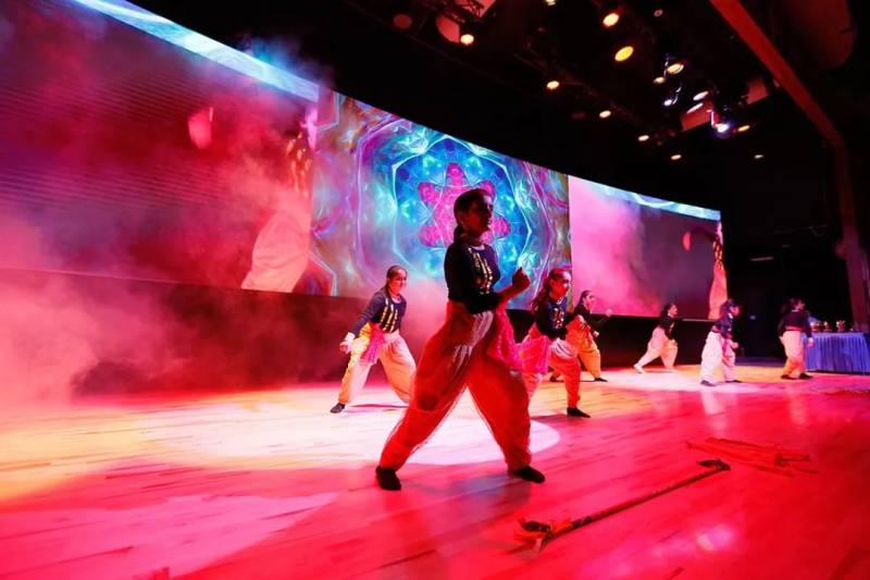 学校的多功能大厅更是可以和新加坡任何最先进的剧院相媲美。可容纳700人的座位,5个不同角度的永久摄像头,50英尺高的全墙LED显示屏,约15英尺高,还有视频会议设施。它巨大的舞台由三面高清晰度的显示屏组成,包括LED显示屏、内置的音频系统、视频系统、悬垂式麦克风、高端扬声器和特殊音响系统。