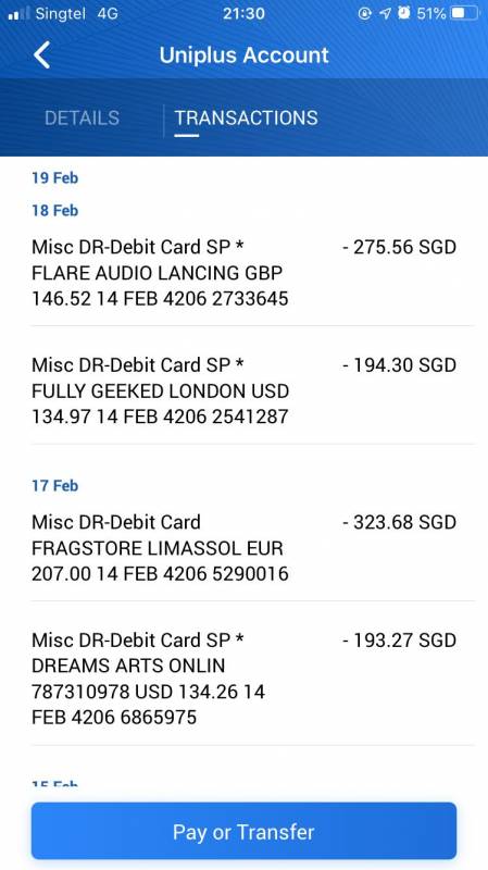 她赶紧打给了UOB的人工客服电话, 客服说因为她14号有多笔visa消费, 所以只有34块多的额度了。 之后,客服便帮她 转了UOB的卡服务中心, 申请了消费争议,也把卡冻结了。