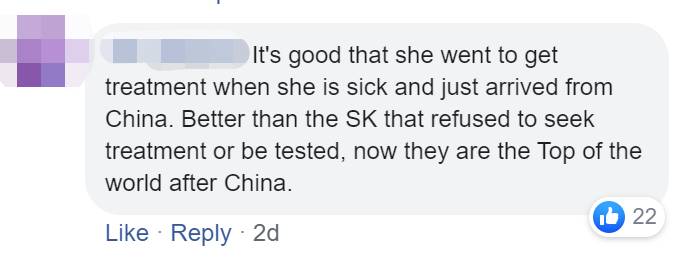她不舒服马上去看医生这很好,而且她刚刚从中国回来。比韩国那个拒绝检测的(大姐)好,韩国确诊现在已经世界第二多了!