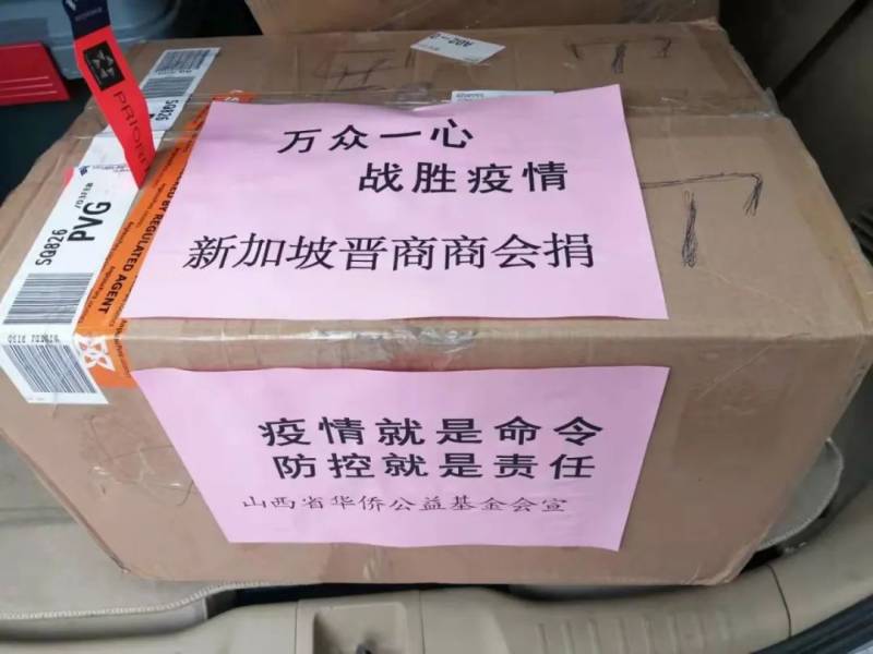 新加坡晋商商会三天筹款12万全部捐献疫区 新加坡晋商商会发出‘大爱无疆,攻克时限’的倡议募捐活动,迅速得到会员们的积极响应。仅三天内就筹得款项近12万人民币和物资全部发往国内。其中N95口罩200个,医用口罩10020个,护目镜300个。