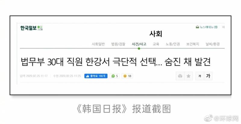 疫情局部爆发的大邱及庆尚北道地区大韩航空1名乘务人员确诊;韩国JTBC电视台气象女主播上班低烧被紧急送医,密切接触者被紧急隔离;韩国一30多岁参与防控的公务人员在今天早晨投江自杀……