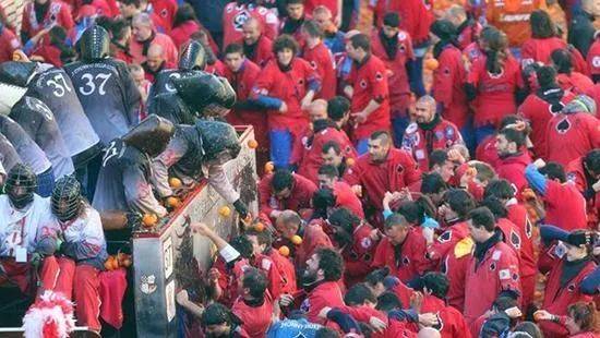 反观当地人的防疫心态,也是大条到可怕。疫情阴霾下,意大利还是照常举行了每年的盛事——“橘子大战” 约15000人参加狂欢,密密麻麻的人群看得人头皮发麻。