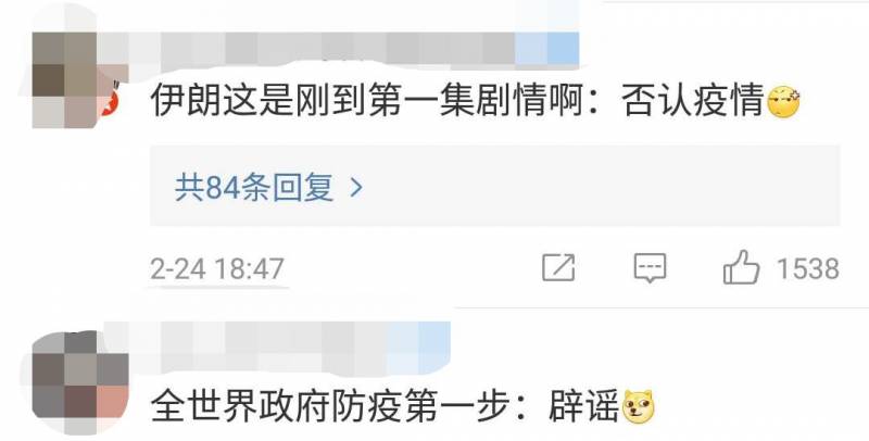 对于库姆市有50人死于新型肺炎,超250人被隔离的消息,伊朗卫生部已否认了该消息称这是造谣。网友调侃:这是第一集剧情——否认疫情!
