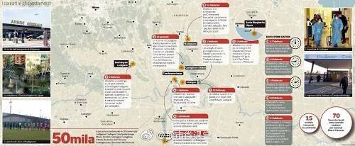 境内疑似出现超级感染,一人影响50000人。意大利的1号患者是居住科多尼奥镇北部的38岁男性,该男子在发病前曾在三个地区参加了半马比赛(约1200人参加)、小镇跑步以及足球赛,累计影响5万人。