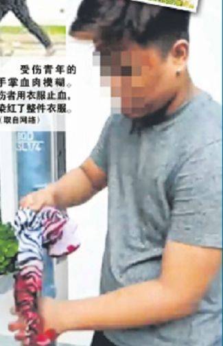 开始了疯狂殴斗!先是5名男子追着一个身穿灰色上衣的青年,沿着组屋楼下的露天停车场奔跑。 灰衣男子用尽全力夺命狂奔,突然后脚不稳跌倒,然后一大群人马一拥而上,开始拳打脚踢。现场还有人负伤,一名20多岁的青年出现在组屋附近试图包扎伤口,只见他左手掌受伤,血肉模糊,还拿着一件衣服止血,转眼间,衣服也被鲜血浸透!