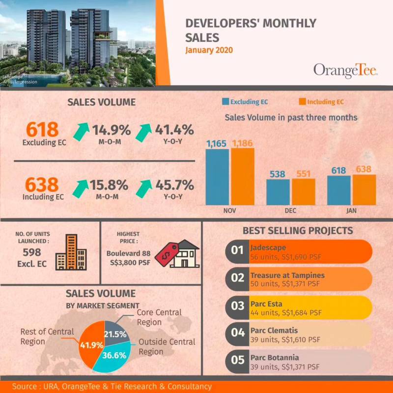 从新加坡一月份楼市销售数据来看,新私宅销量竟增加了14.8%,由跌反升,可见楼市买气依旧不减。