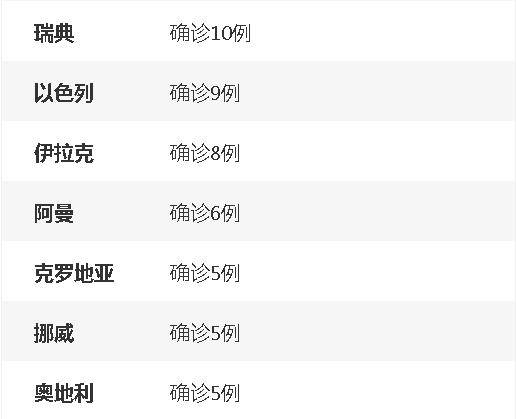 另据世卫组织数据,自2月27日以来,丹麦、爱沙尼亚、立陶宛、荷兰、尼日利亚报告了首个新冠肺炎确诊病例,这些病例都同意大利有关。有14个国家发现了24例同意大利有关的病例,11个国家发现了97例同伊朗有关的病例。