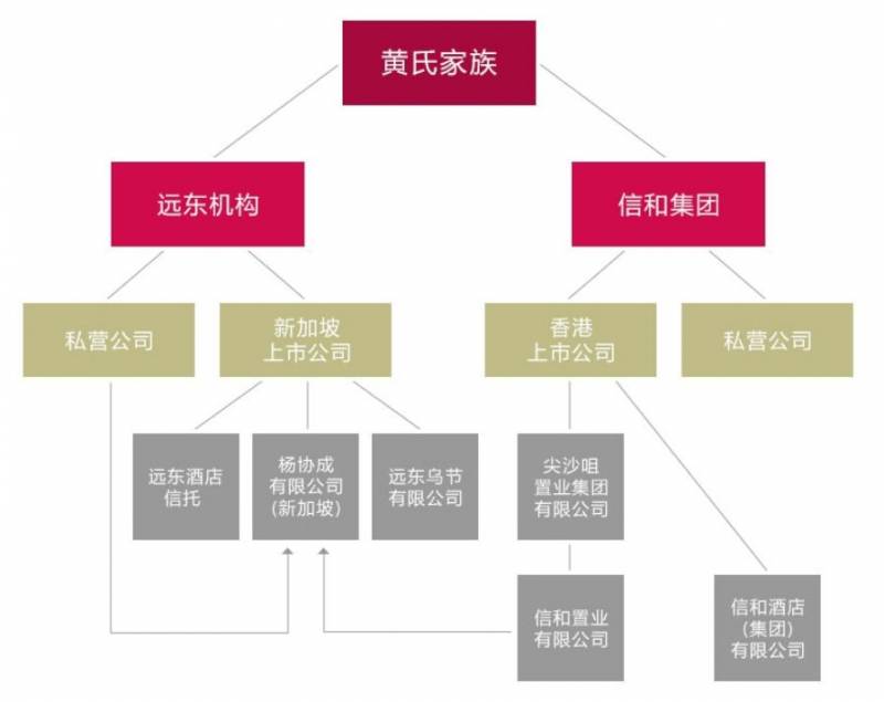 黄廷方在1962年一手创立的远东机构,现已发展成在亚洲赫赫有名的房地产发展商。远东商业中心、幸运中心、远东购物中心、乌节商业中心、乌节购物中心、太平洋广场、乌节中央城、卡佩芝大厦、丽晶大厦、克拉码头中心……在新加坡的方寸之地,每走几步就能看见远东旗下的一栋楼,据说每6户私人住宅中就有一栋是黄氏家族旗下的公司所建造。