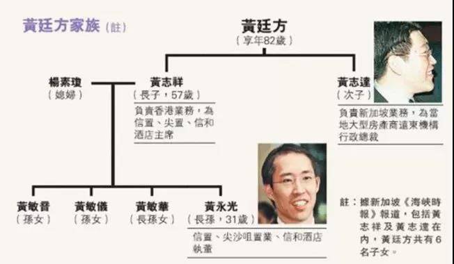 1952年出生的黄志祥是家中长子,小他3岁的弟弟名叫黄志达,黄家除兄弟二人外还有4个姐妹。黄廷方很早开始培养兄弟俩的商业嗅觉和决策力,90年代中期开始布局交班大计。他安排黄志祥驻扎香港,掌管信和置业;黄志达则留在新加坡,协助处理远东机构的业务。