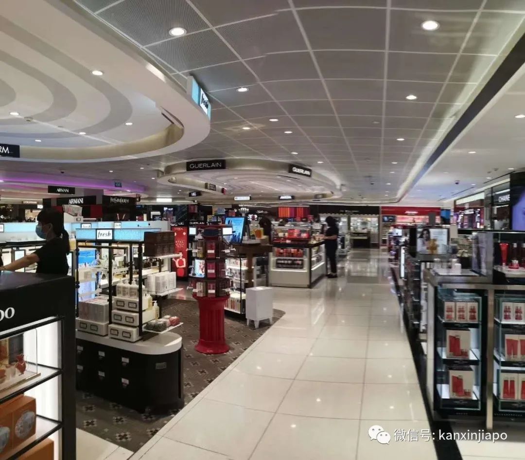 免税店内,不再有往来各国游客购物的身影,只有零星戴着口罩的销售人员,估计这时候热门产品不会断货了吧~
