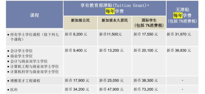 + 领取新加坡教育部津贴(Tuition Grant)的外籍学生(包括新加坡永久居民)毕业后,需为新加坡注册公司服务 3 年。