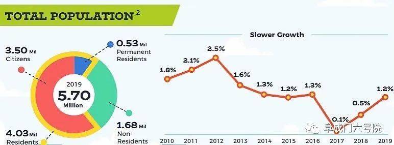 (新加坡人口比例和增长率,来源:新加坡总理公署2019年人口简报 https://www.population.sg/articles/population-in-brief-2019)